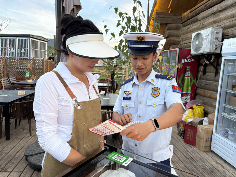 夏季是旅游的黄金旺季,景区人流量大幅提升,消防安全压力倍增。为不断扩大消防宣传阵地及覆盖面,切实做好旅游景区的消防安全工作,积极预防各类火灾事故的发生,近日,阿勒泰地区消防救援支队消防宣传车“变身”移动课堂,为景区群众送上消防“平安礼”。 大红色的车身背景、车载LED显示屏滚动播放着警示教育片和消防安全常识,迅速吸引了来往游客和景区工作人员驻足观看。宣传车先后播放《火灾警示教育片》《新疆消防系列公益广告》等视频,将日常家庭生活中如何安全用火、用电、用气的基本常识和防火、逃生、自救基本方法通过动漫的形式,生动的展现在群众面前。同时消防人偶以可爱亲民的形象穿梭在景区人群中,与游客热情互动,一起拍照留念,并向他们发放消防宣传手册等宣传品,提醒大家不要携带火种进入景区,游玩过程中禁止吸烟,让大家在游玩之余,将守护木屋和林海生态的消防安全知识“带”回家。 下一步,支队将继续探索更多创新的消防宣传形式,持续深入开展消防宣传进景区活动,不断提高广大群众的消防安全意识和自防自救能力,为景区的消防安全和旅游事业的健康发展保驾护航。