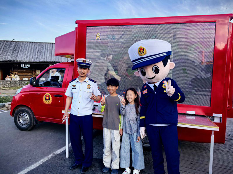 夏季是旅游的黄金旺季,景区人流量大幅提升,消防安全压力倍增。为不断扩大消防宣传阵地及覆盖面,切实做好旅游景区的消防安全工作,积极预防各类火灾事故的发生,近日,阿勒泰地区消防救援支队消防宣传车“变身”移动课堂,为景区群众送上消防“平安礼”。 大红色的车身背景、车载LED显示屏滚动播放着警示教育片和消防安全常识,迅速吸引了来往游客和景区工作人员驻足观看。宣传车先后播放《火灾警示教育片》《新疆消防系列公益广告》等视频,将日常家庭生活中如何安全用火、用电、用气的基本常识和防火、逃生、自救基本方法通过动漫的形式,生动的展现在群众面前。同时消防人偶以可爱亲民的形象穿梭在景区人群中,与游客热情互动,一起拍照留念,并向他们发放消防宣传手册等宣传品,提醒大家不要携带火种进入景区,游玩过程中禁止吸烟,让大家在游玩之余,将守护木屋和林海生态的消防安全知识“带”回家。 下一步,支队将继续探索更多创新的消防宣传形式,持续深入开展消防宣传进景区活动,不断提高广大群众的消防安全意识和自防自救能力,为景区的消防安全和旅游事业的健康发展保驾护航。